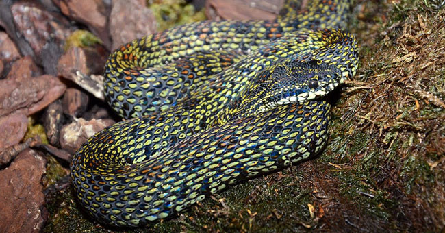 Sở hữu một màu nâu óng với những họa tiết màu đen đầy tinh xảo, rắn lục núi Ovophis monticola, loài chuyên đi săn vào ban đêm, là một trong những “tử thần” đáng sợ nhất của các sinh vật sống trong rừng ở độ cao 1.500 mét.