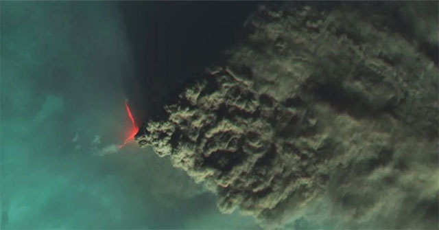 Vệ tinh Landsat 8 do NASA và Cơ quan Khảo sát Địa chất Mỹ đồng điều hành, đã chụp được một hình ảnh nổi bật về vụ phun trào này. Vệ tinh Aqua của NASA cũng chụp được hình ảnh màu sắc thực rộng hơn của đám khói, cho thấy lượng khói đã “vươn” ra và trải dài khoảng 1.600 km vào thời điểm đó. Theo Chương trình Núi lửa Toàn cầu của Viện Smithsonian, lượng khói bụi này lan xa đỉnh điểm tới 2.255 km.
