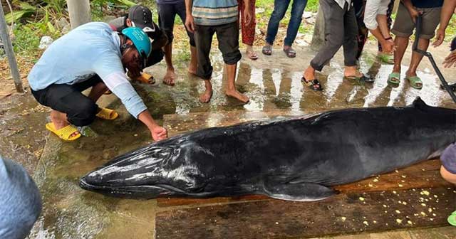 Cá ông nặng khoảng 300kg dạt vào bờ biển Trà Vinh.