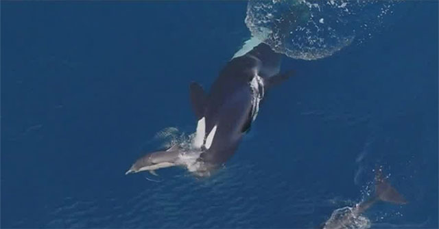 Đàn cá voi sát thủ tương tác với cá heo. (Video: Domenic Biagini).