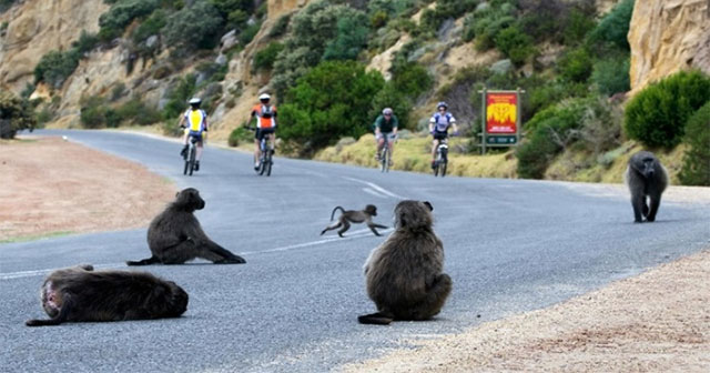 Khỉ đầu chó tràn ra đường ở vịnh Cape, Nam Phi. (Ảnh: Brett Cole).