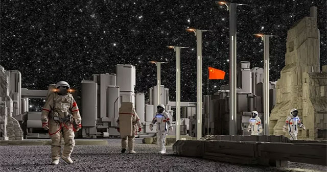 Ảnh mô phỏng một thành phố trên Mặt trăng. (Ảnh: Space).