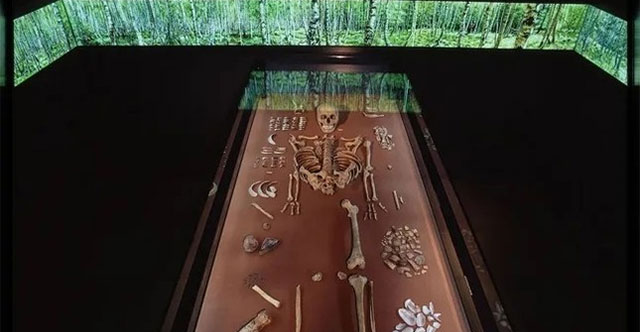 Một phần của cuộc triển lãm tại Bảo tàng Tiền sử Bang ở Halle (Saale) ở Đức về ngôi mộ kép. (Nguồn hình ảnh: LDA Sachsen-Anhalt, Juraj Lipták)