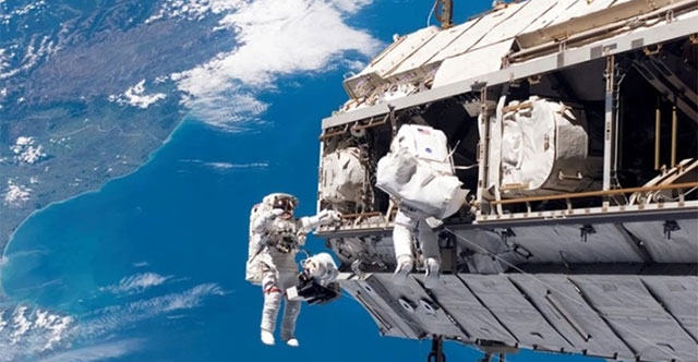 Các phi hành gia đi bộ bên ngoài trạm ISS. (Ảnh: NASA).