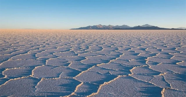 Sa mạc Salar de Uyuni nổi tiếng với nước bề mặt giống tấm gương phản chiếu khổng lồ và vỏ muối có hoa văn hình lục giác, bên dưới là hơn 10 triệu tấn lithium trị giá cao.