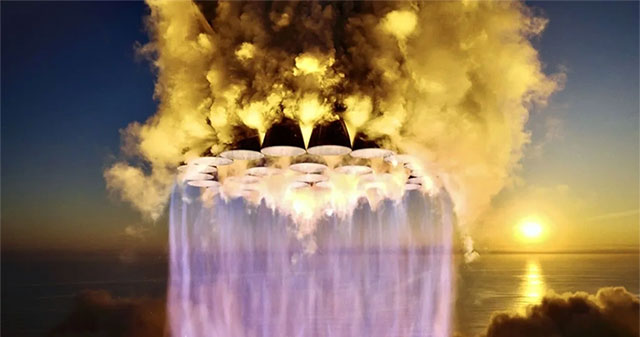 Khoảnh khắc 33 động cơ Raptor được trang bị trên hệ thống đẩy Super Heavy bùng nổ