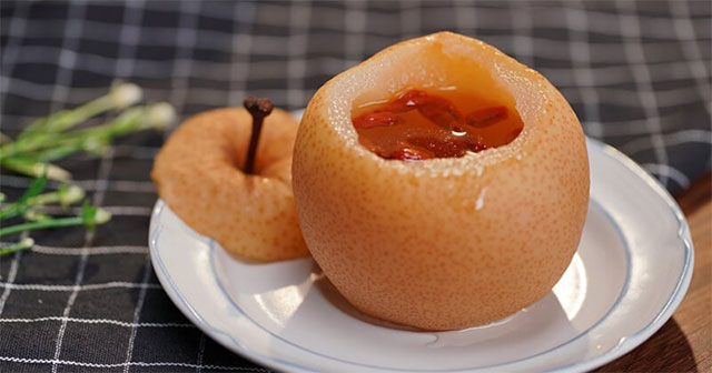 Lê nấu chín có tính mát, hơi chua, có tác dụng thanh nhiệt, nhuận phế, tiêu đờm, giảm ho…
