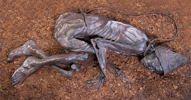 Một trong những “thi thể đầm lầy” được bảo tồn tốt nhất trong lịch sử, Tollund Man được phát hiện với một chiếc thòng lọng quanh cổ, khiến các nhà nghiên cứu kết luận rằng anh ta là nạn nhân của lễ hiến tế con người.